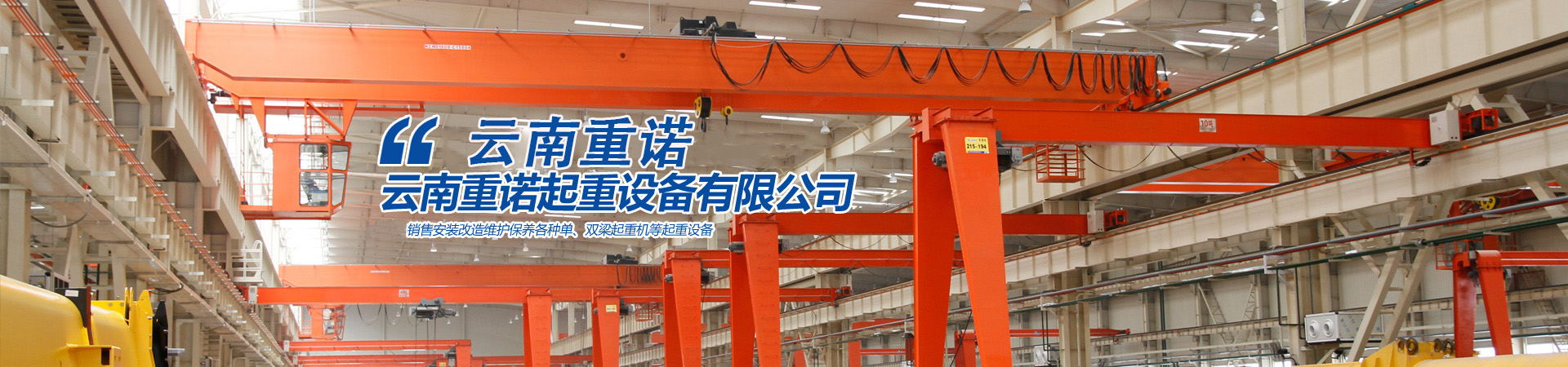 云南重諾起重設(shè)備有限公司主要經(jīng)營銷售:橋式起重機、門式起重機、懸掛起重機、旋臂起重機、電動葫蘆、升降貨梯、電動平車、液壓升降平臺、升降搬運設(shè)備、起重配套工具、起重軸承、起重機各部位配件。公司產(chǎn)品暢銷全國各地,深受用戶的信賴。  公司通過了ISO9001 :2000質(zhì)量體系認證具備320T及以下噸位橋式起重機、280T及以下噸位門式起重機特種設(shè)備制造許可證.320T及以下起重機的特種設(shè)備安裝......更多>>